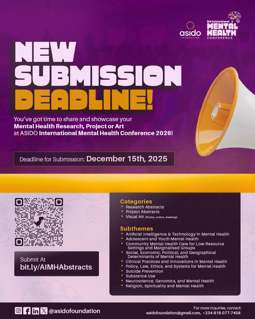 The Asido Foundation has announced an extension to the submission deadline for its 3rd International Mental Health Conference, offering a renewed opportunity for creators across disciplines, including comic artists, to contribute their work to one of Africa’s most influential platforms for mental health discourse. The new deadline is 15 December 2025, giving artists, researchers, and project leaders more time to prepare.